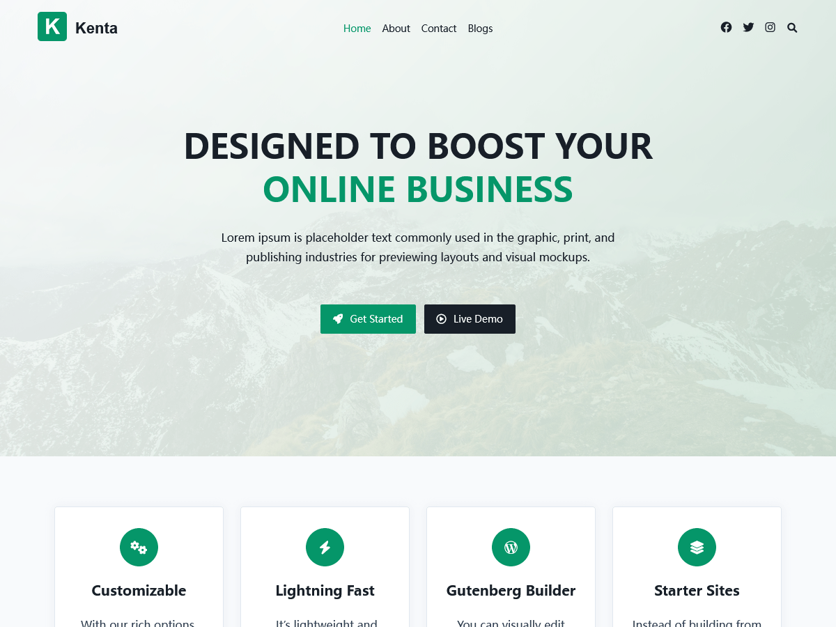 The Companion Plugin brings some extra features like cookie consent, socials and more. Additionally, you can access our Kenta theme starter sites library where you can import our pre-designed starting site with one click.